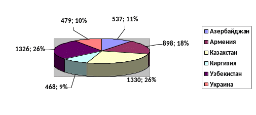 Прибывшие из зарубежных стран в 2001 г. (чел., %)