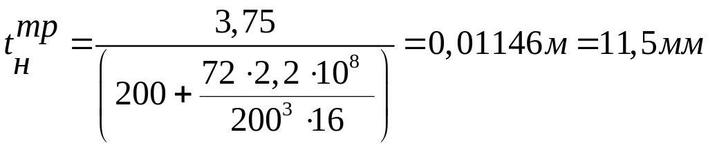 Толщину настила определяем исходя из выполнения условия 2-й группы предельных состояний: