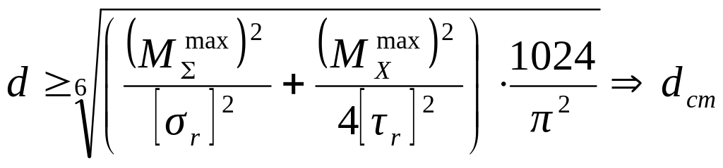 Выполняем расчет на прочность по третьей теории (наибольших касательных напряжений)