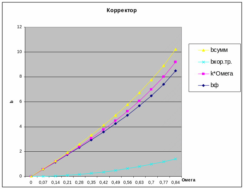 На Графике 4 проводим прямую k* Ω - идеальная характеристика, а затем строим кривую bкор.тр. - требуемая частотная характеристика фазового сдвига корректора.