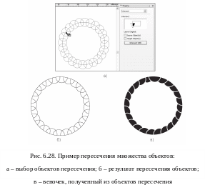 На рис. 6.26, а показан пример выполнения операции исключения из одного объекта (объекта назначения) перекрывающихся частей с группой объектов (исходными объектами).