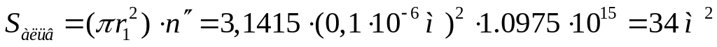 Величина площі Sальв внутрішньої поверхні легень (альвеол), вкритої шаром частинок тютюнового дьогтю, розраховується через площу, вкриту однією частинкою смоли , помножену на кількість цих частинок :