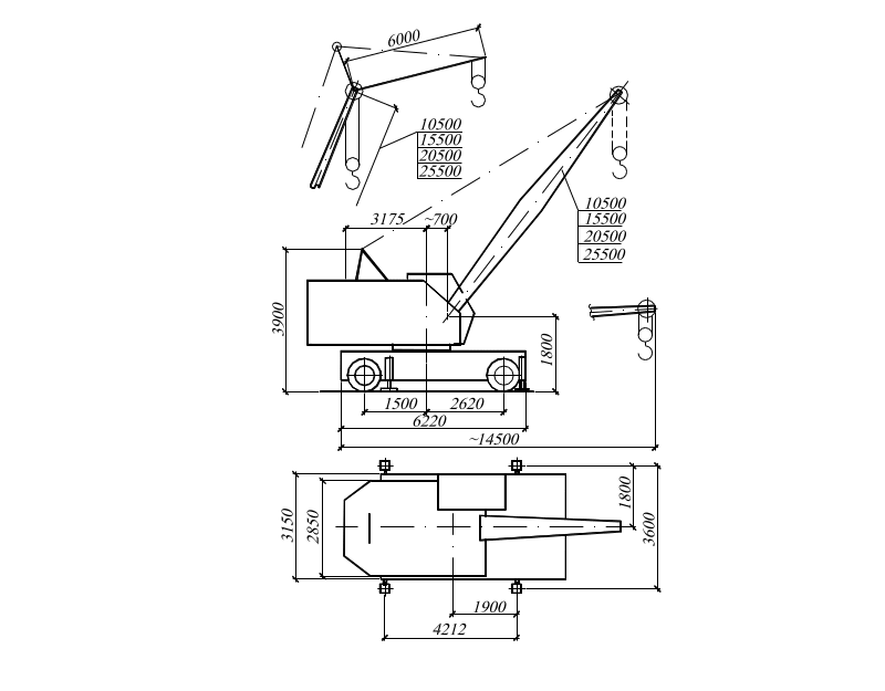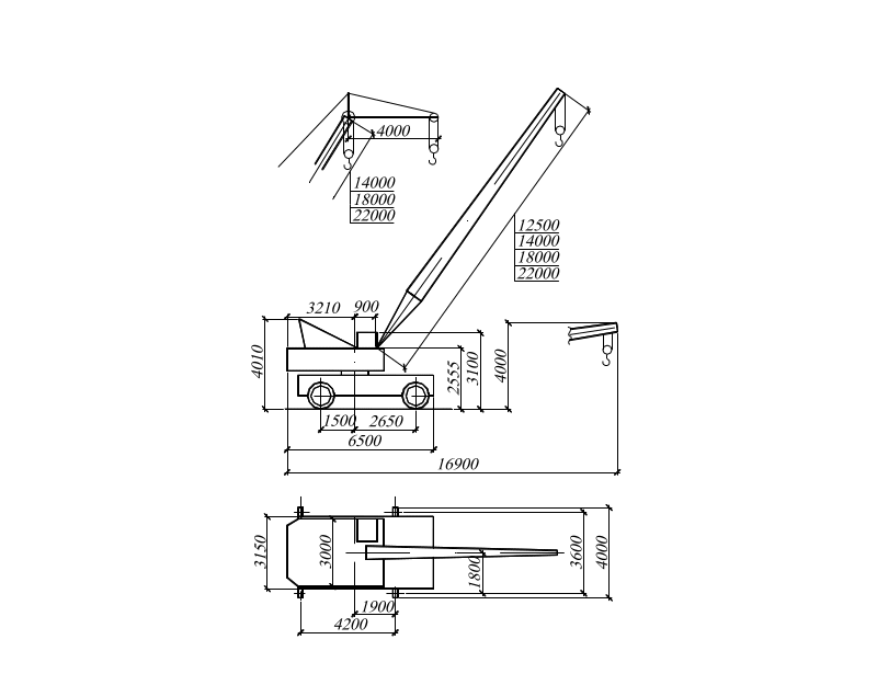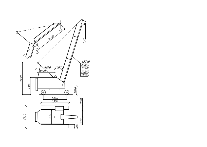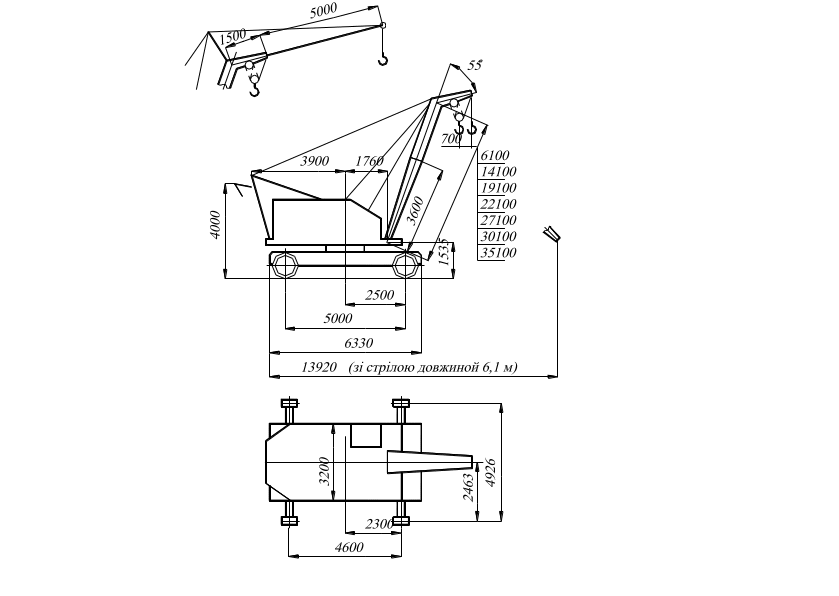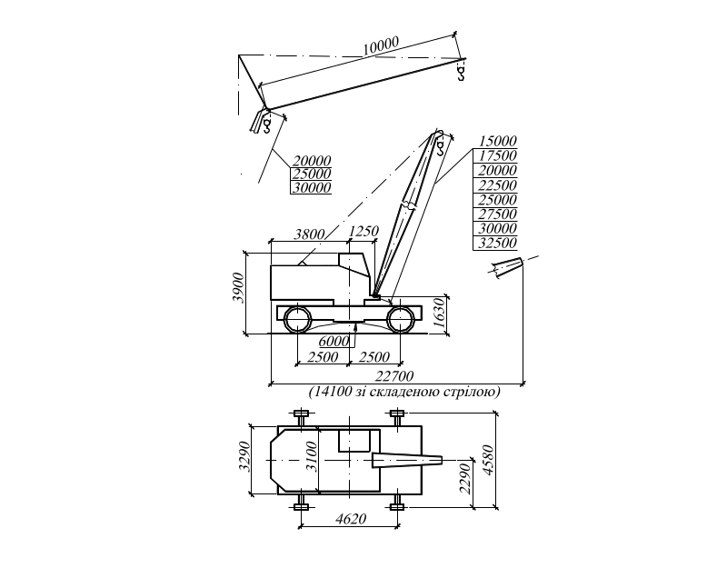 з довжиною стріли 6,1; 14,1; 19,1; 22,1 м і гусачка – 5 м
