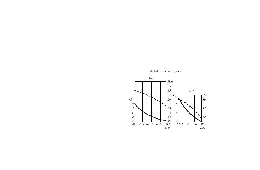 Рисунок 4.19 – Вантажні і висотні характеристики крана МКГ-40