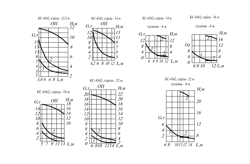 з довжиною стріли 12,5; 14, 18, 22 м і гусачка – 4 м