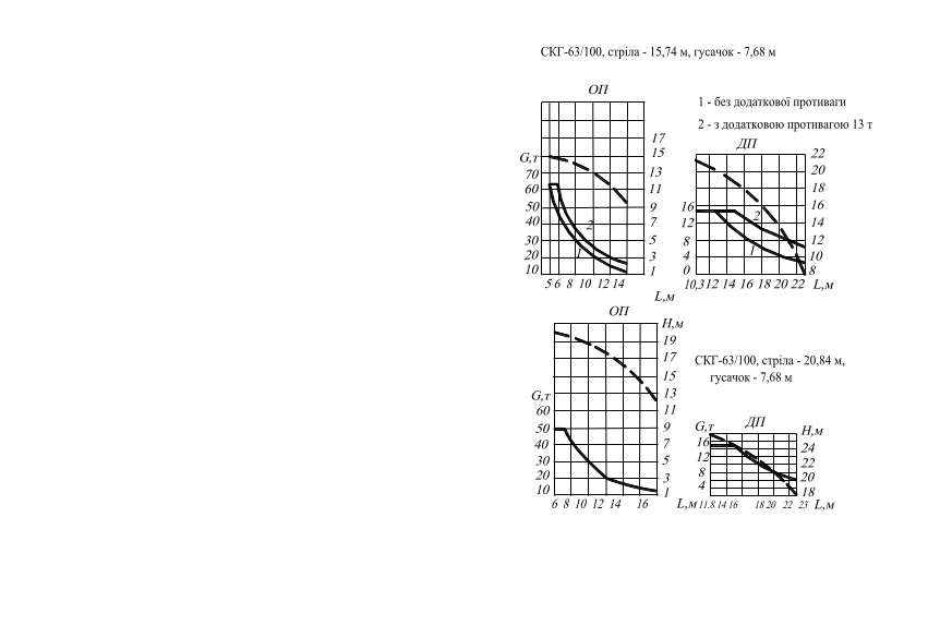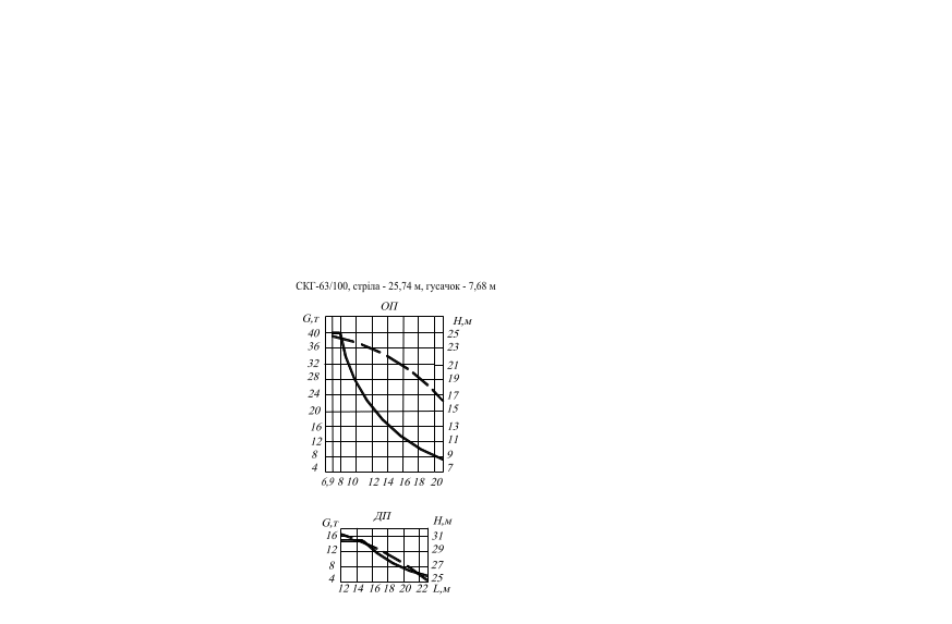 Рисунок 4.28 – Вантажні і висотні характеристики крана СКГ-63/100