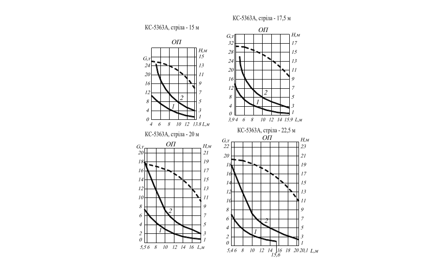 Рисунок 3.7 – Вантажні і висотні характеристики крана КС-5363А