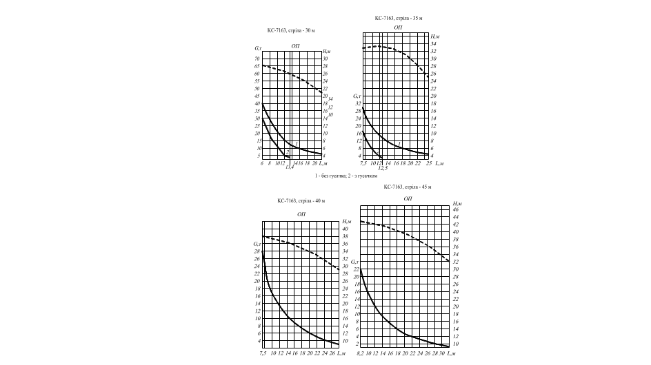 Рисунок 4.37 – Вантажні і висотні характеристики крана КС-7163