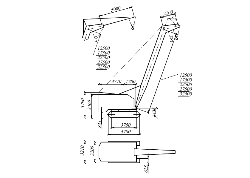Рисунок 4.40 – Конструкція гусачка на кран КС-8165 з довжиною стріли 25, 30 і 35 м