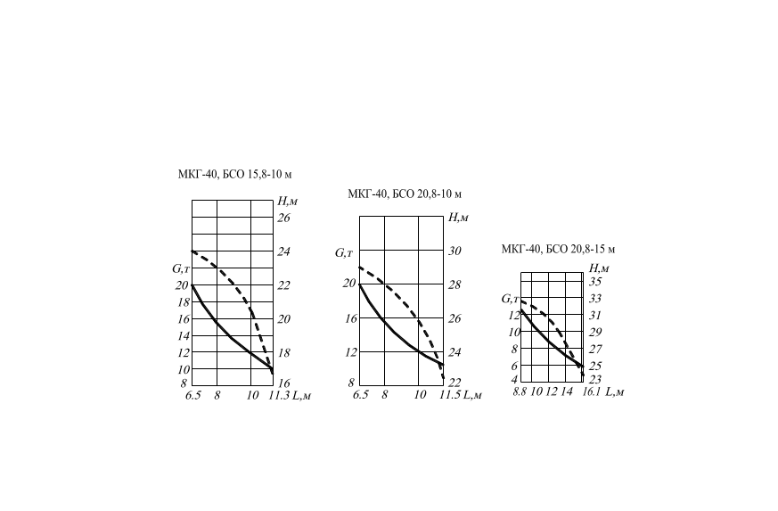 Рисунок 4.20 – Вантажні і висотні характеристики крана МКГ-40