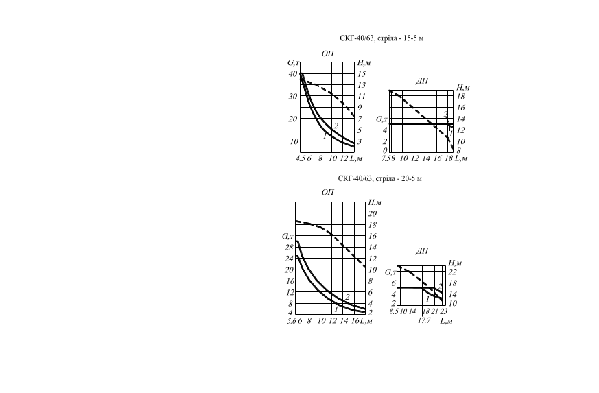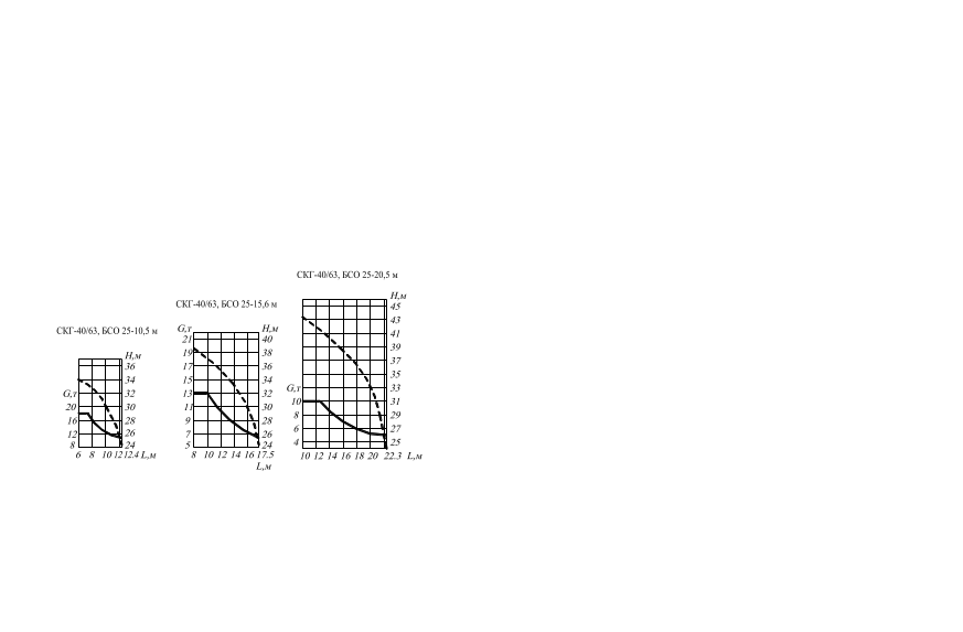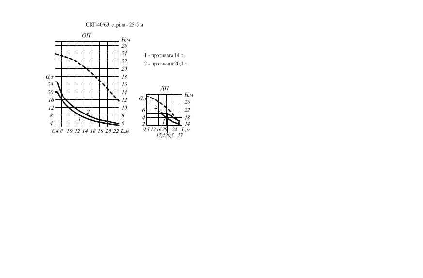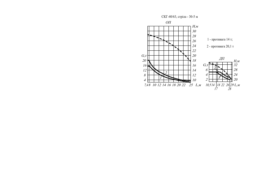 Рисунок 4.30 – Вантажні і висотні характеристики крана СКГ-40/63