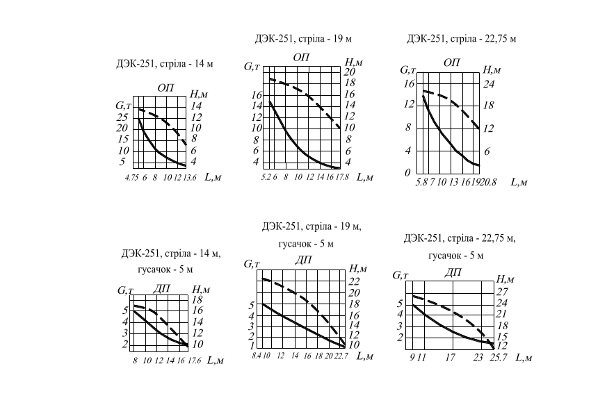 Рисунок 4.14 – Вантажні і висотні характеристики крана ДЭК-251