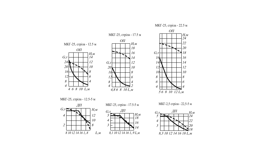 Рисунок 4.10 – Вантажні і висотні характеристики крана МКГ-25