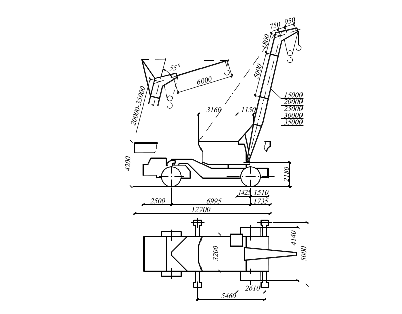Рисунок 4.34 – Вантажні і висотні характеристики крана СКГ-40/63
