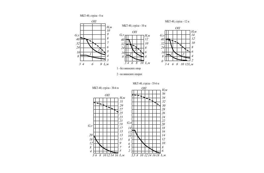 Рисунок 3.12 – Вантажні і висотні характеристики крана МКТ-40