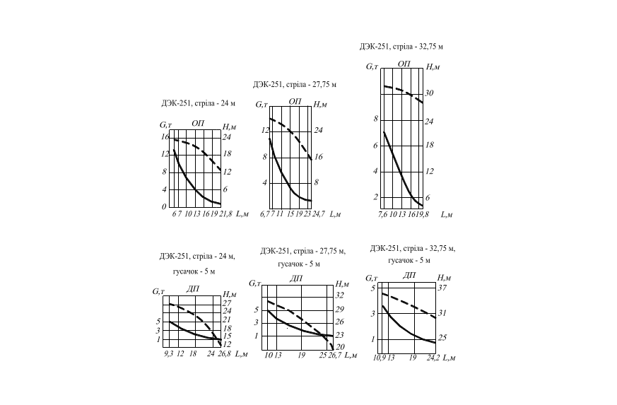 Рисунок 4.13 – Вантажні і висотні характеристики крана ДЭК-251