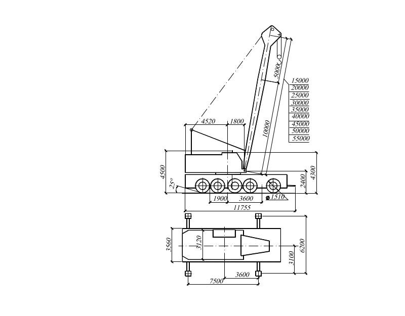 Рисунок 4.24 – Вантажні і висотні характеристики крана ДЭК-50
