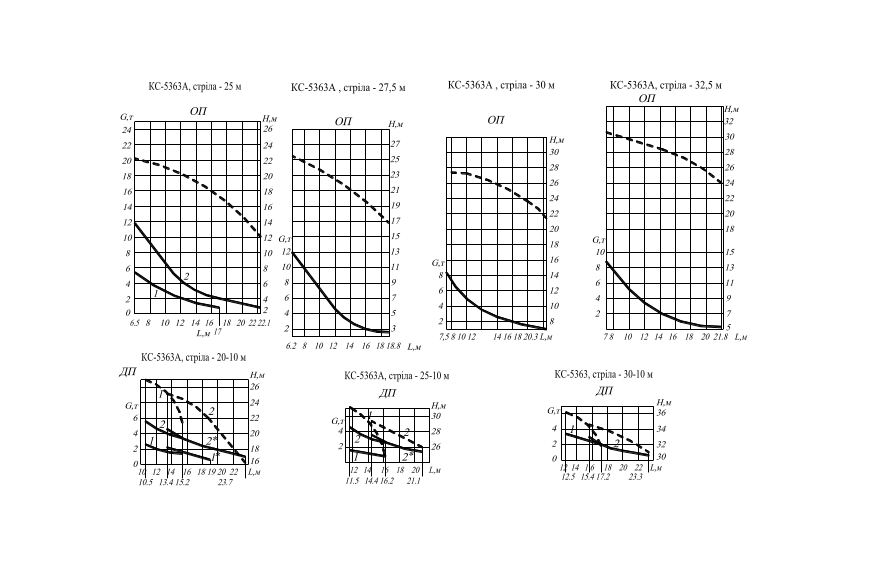 з довжиною стріли 25, 27,5, 30, 32,5м і гусачка – 10 м
