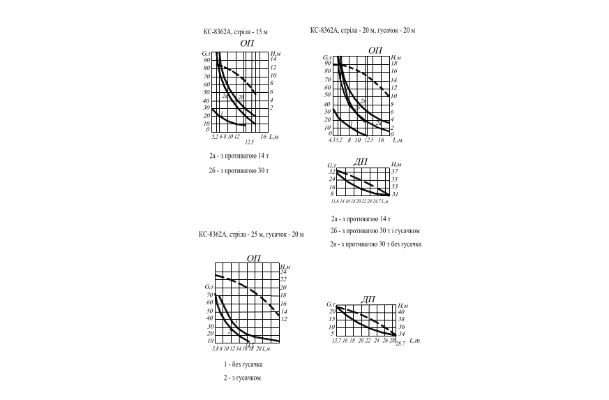 Рисунок 3.10 – Вантажні і висотні характеристики крана КС-8362А