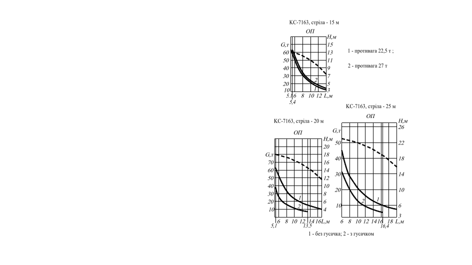 Рисунок 4.38 – Вантажні і висотні характеристики крана КС-7163