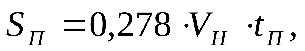де Sп – шлях підготовки гальм до дії, протягом якого гальма потяга умовно приймаються недіючими ( від моменту установки ручки крана машиніста в гальмове положення до вмикання гальмів потяга на повну гальмову силу ), м;