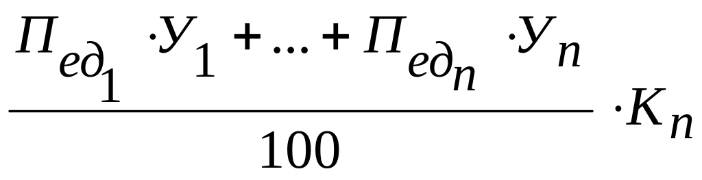 У1, Уn – доля выпускаемого каждого вида продукции в общем выпуске линии, %.