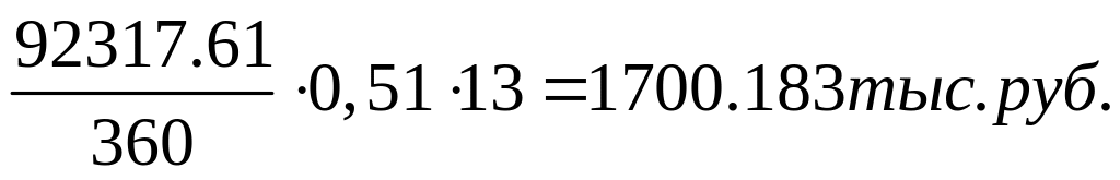 где - производственная себестоимость годового выпуска товара. Соответствует итогу сметы затрат на производство и реализацию без затрат по сбыту продукции (строка 5 табл.3.2), 92317.61 тыс. руб.;