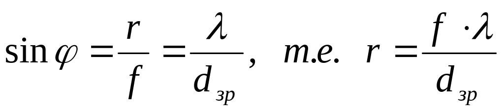 При учете того факта, что интерференция происходит не на отрезке dзр, а на диске диаметром dзр, получим:
