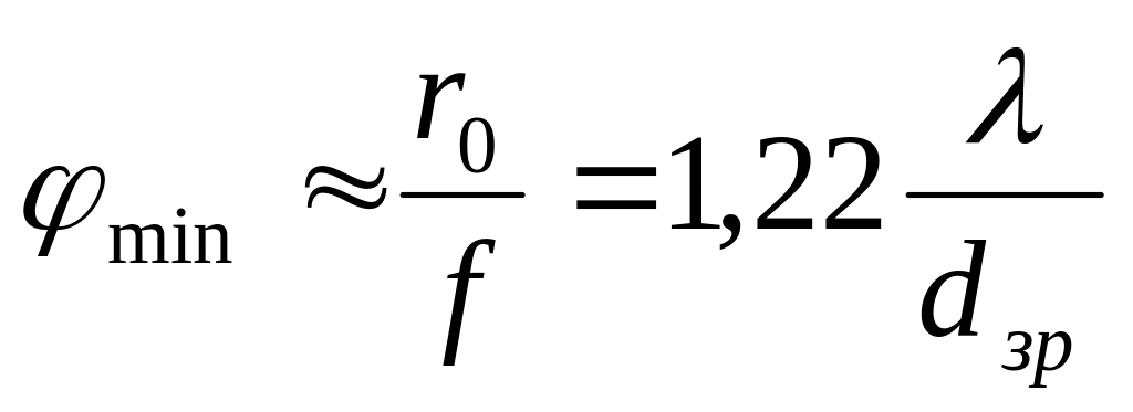 Для = 500 нм, dзр = 5 мм, min = 0,03. Это теоретический предел разрешающей способности глаза за счет дифракции.
