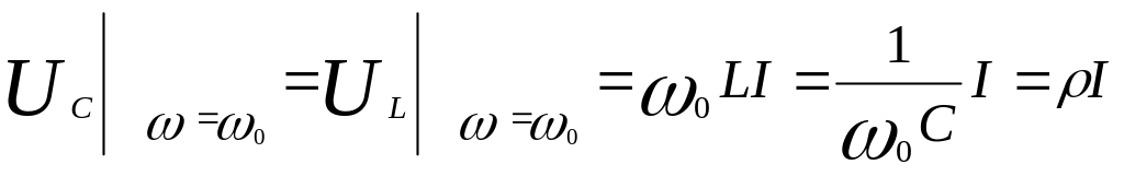 Действующее значение напряжения U на реактивных элементах контура на резонансной частоте определяется произведением характеристического сопротивления на действующее значение тока: