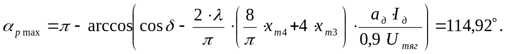 Расчёт максимального угла регулирования тиристоров для режима инвертирования (IV зона регулирования) при :