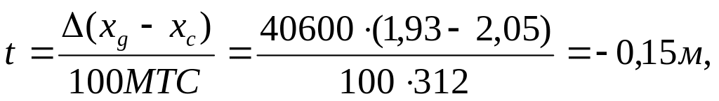 - момент, що диферентує на 1 см МТС = 312тм/см;