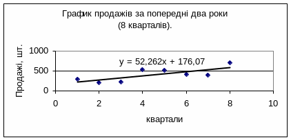 Наведемо приклад виконання прогнозу попиту на базі квартальних даних попереднього періоду