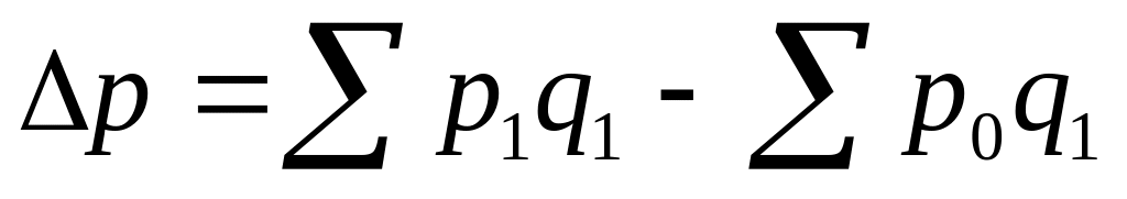 В общих индексах качественных показателей в качестве веса – соизмерителя выступает количественный показатель ( или ) текущего периода. На основе данной формулы можно определить абсолютное изменение выручки в результате изменения цен на продукцию