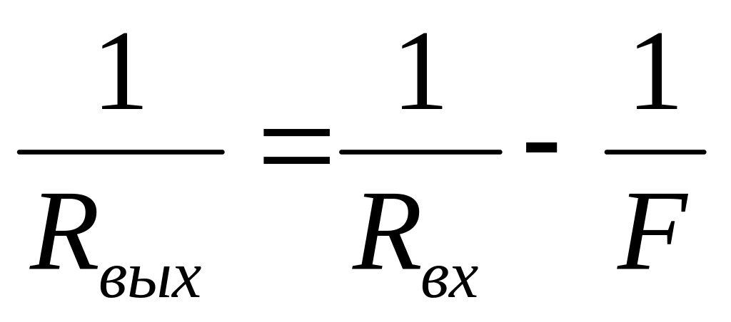 Rвх, Rвых -радиусы кривизны волнового фронта. Связь между ними определяется формулой тонкой линзы. Формула тонкой линзы на языке радиуса кривизны волнового фронта: