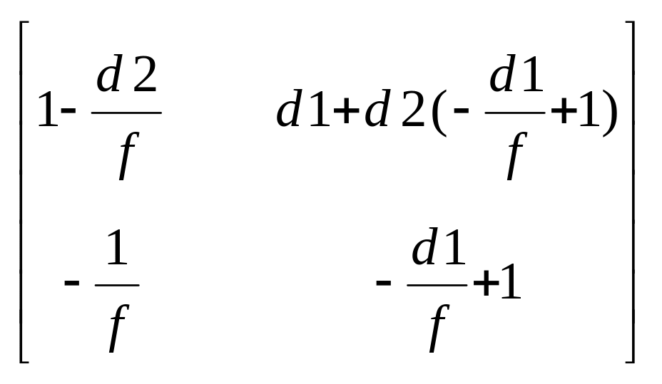 Т.о. кривизна волнового фронта на выходе равна кривизне волнового фронта на входе минус оптическая сила.