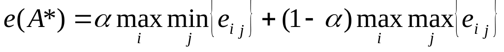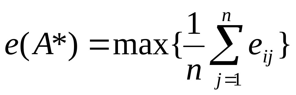 Критерий максимакса (принцип безудержного оптимизма). Если критерий максимина ориентирован на получение гарантированного минимума желаемого результата (правило "лучший" из "худших”), то критерий оптимизма предполагает возможность получения максимального уровня желательности результата. Эта альтернатива А* выбирается исходя из выражения