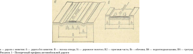На рис. 1 показан поперечный профиль автомобильной дороги.