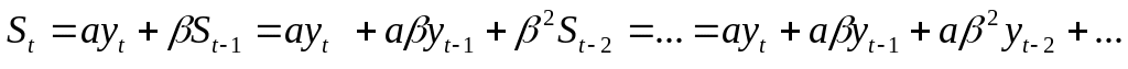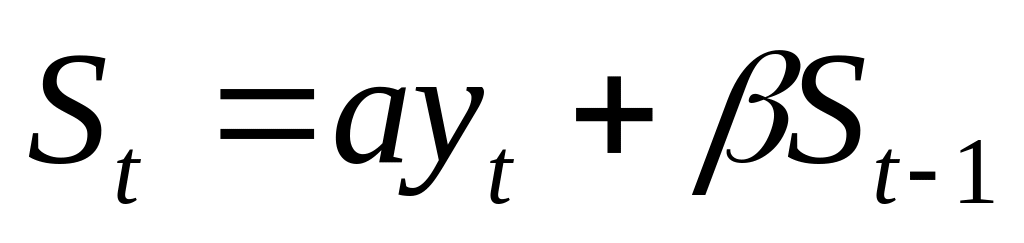 Экспоненциальное сглаживание временного ряда yt осуществляется по рекуррентной формуле