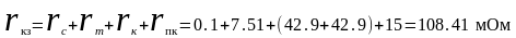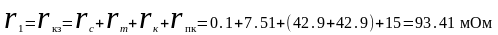 rкз=rc+rT+rпк+rk=0.1+7.51+15+42.9=66.51мОм