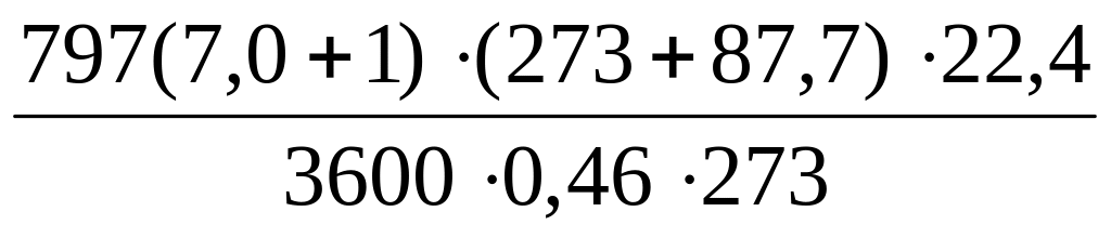Q=1,03·(797 · (7,0+1)·2178+403 ·3,43· 78– 1200·3,22·80 – 7,0·797·4,3·97)= 11699384,5 кДж/ч