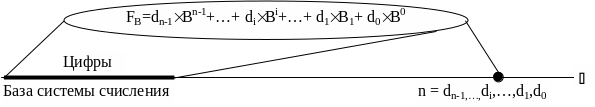 Примечание. Подобная система обозначений натуральных величин называется позиционной системой счисления, потому что в формуле числа каждое число базы, представленное цифрой, вносит в значение числа вклад, пропорциональный позиции, в которой эта цифра располагается.