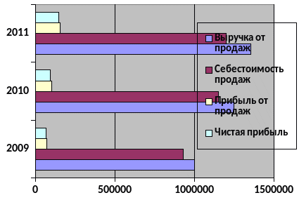 Рисунок 2 - Результаты деятельности ООО «ТК Жираф.ру» за 2009 – 2011гг.