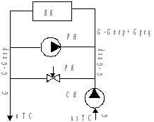 При tн < tнa включаются основной подогреватель и пиковый водяной котел. При включении в работу водяного котла загрузка теплофикационного отбора не меняется, что можно обеспечить при постоянном расходе в сети выдерживая постоянный перепад давления по сетевой воде на основном подогревателе.