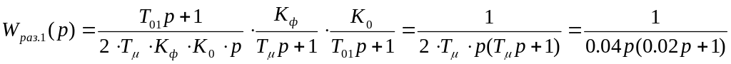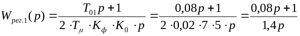 Передаточная функция регулятора внутреннего контура регулирования может быть найдена по обобщенной формуле
