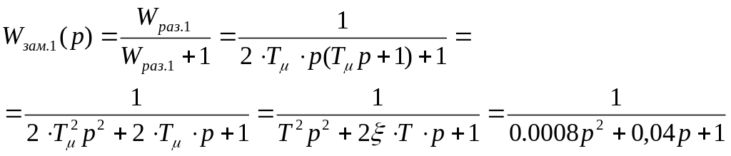 2.3. Передаточные функции внутреннего оптимального разомкнутого и замкнутого контуров регулирования