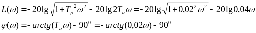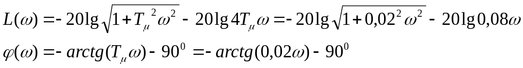 Задаваясь значениями частоты строятся ЛАЧХ и ЛФЧХ используя выражения выведенные в п. 1.5.1.