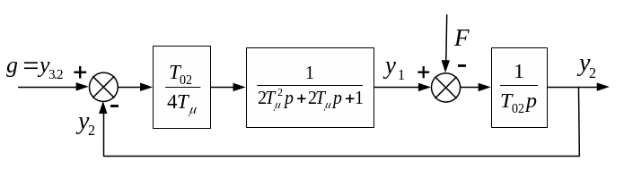 Для того чтобы скомпенсировать постоянную времени T02 необходимо на вход системы поставить второй регулятор, и охватить полученную разомкнутую систему единичной отрицательной обратной связью. Передаточная функция регулятора определиться по формуле