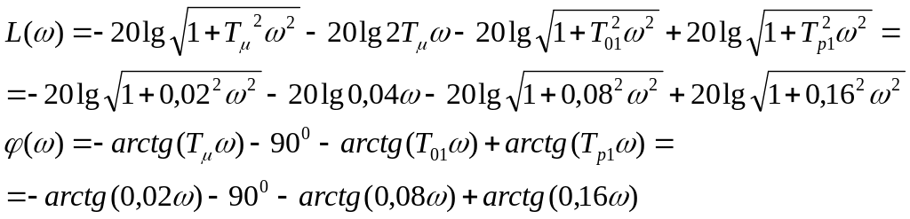 Задаваясь значениями частоты строятся ЛАЧХ и ЛФЧХ используя выражения выведенные в п. 2.5.1. Построение асимптотических ЛАЧХ и ЛФЧХ для разомкнутой САР произведено на рис. 5.