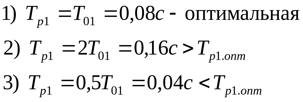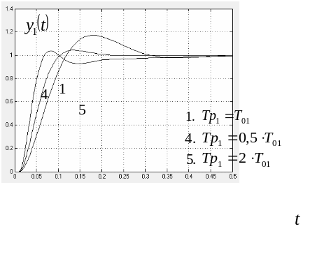 При изменении постоянной Tр1 система перестает быть оптимальной. Изменение Tр1 ведет к усложнению передаточной функции как замкнутой, так и разомкнутой САР. Оптимальность системы при этом нарушается. Новые передаточные функции состоят из четырех последовательно соединенных звеньев